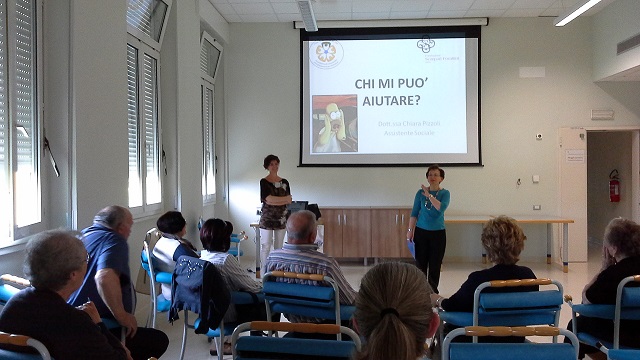 Le numerose persone presenti mercoledì 28/05/14 al quarto incontro del ciclo “Affrontiamo l’Alzheimer senza paure”, organizzato dall’Associazione “Non ti Scordar di Me” presso la sede di Schivenoglia (Mn), hanno ricevuto un importante e chiaro contributo dalla relazione della D.ssa Chiara Pizzoli, Assistente Sociale della R.S.A. Fondazione Scarpari Forattini di Schivenoglia, che ha risposto in modo molto esauriente alla domanda “Chi può aiutarmi?”.