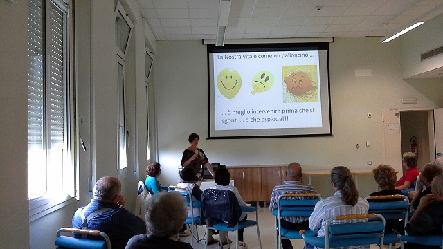 Avendo riscontrato in sala nuove presenze rispetto alla volta precedente, il presidente dell’Associazione ha riproposto una breve introduzione mirata a descrivere lo scopo dell’organizzazione che è quello di valorizzare e sostenere i familiari di persone affette da demenze tipo Alzheimer migliorando la qualità della vita delle famiglie con sostegno umano e assistenziale. Tra le azioni rivolte a raggiungere tale scopo, ricoprono un ruolo fondamentale proprio gli incontri aperti a tutti per diffondere la conoscenza della malattia, per mettere in contatto tra di loro i familiari coinvolti e per dare informazioni utili riguardo ai servizi cui poter accedere.