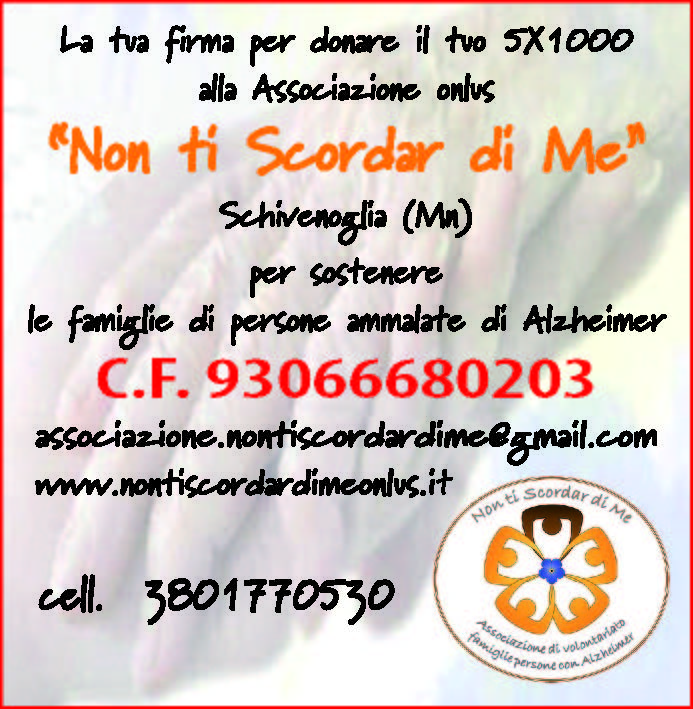 La tua firma per donare il tuo 5 X 1000 alla Associazione onlus “Non ti Scordar di Me” Schivenoglia (Mn)