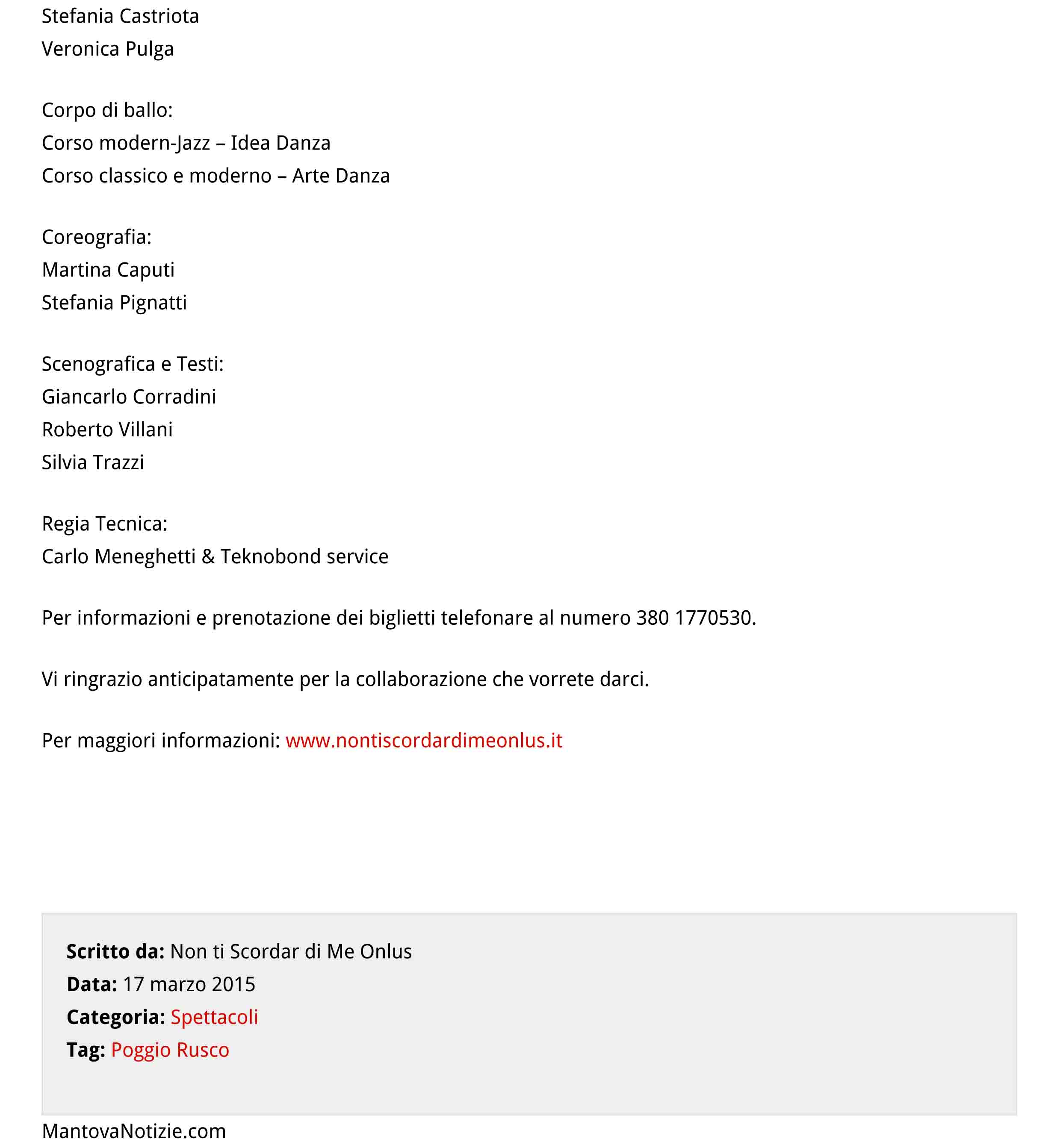 /in Eventi Associazione Non ti Scordar di Me/da Admin OnlusIl notiziario mantovanotizie.com è un punto di riferimento online per i cittadini di Mantova e Provincia, un sito dove raccogliere notizie e dare visibilià a eventi e manifestazioni che si svolgono sul territorio.